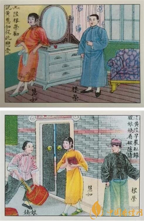 這套卷煙畫片根據(jù)1928年轟動(dòng)全國的一起感情事件改編。黃慧如與陸根生的愛情故事是當(dāng)時(shí)轟動(dòng)滬上的著名案件之一,各大報(bào)紙爭相報(bào)道,以之為題材的書籍、新劇、電影、評彈等數(shù)不勝數(shù)。卷煙廠商自然也不甘落后,爭先恐后出品了這一熱門題材的卷煙畫片,收效頗豐。同期,有些卷煙廠商還出品了“黃慧如”煙標(biāo)。
