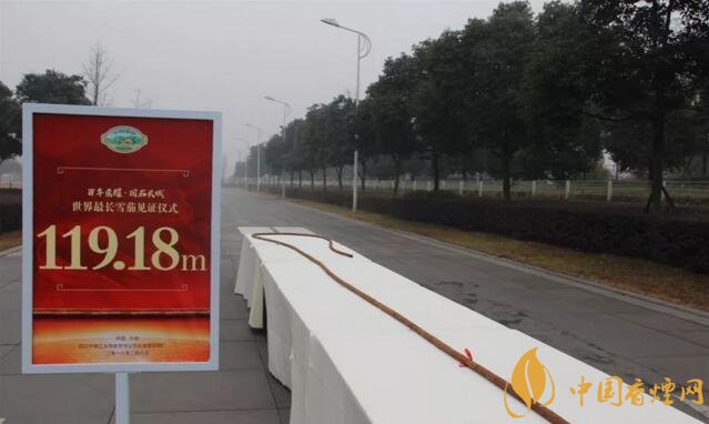 2018年2月8號(hào),這款雪茄在四川中煙工業(yè)有限責(zé)任公司長(zhǎng)城雪茄煙廠驚艷亮相,打破了此前由古巴人保持的81.8米世界吉尼斯紀(jì)錄,成為中國(guó)雪茄的第一個(gè)“世界之最”。據(jù)悉,該雪茄將在中國(guó)雪茄博物館永久陳列,并將由專人進(jìn)行定期養(yǎng)護(hù)。