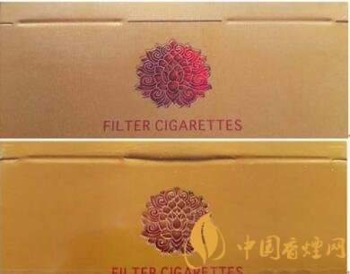 真品卷煙花團圖案清晰、立體感強,燙金線明亮。該款假冒卷煙圖案模糊,無立體感。
