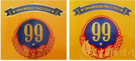 真品卷煙:1.商標(biāo)LOGO稻穗圖案凸起,整體立體、飽滿,大豐收。2.99數(shù)字筆畫圓潤、飽滿,下面圓點(diǎn)尤為突出。3. 藍(lán)色底紋顏色重,邊緣向中間色彩過渡自然。4.商標(biāo)紙流水紋路清晰可見。
