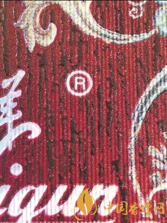 看正面注冊(cè)商標(biāo):真煙小盒正面注冊(cè)商標(biāo)圖案清晰明亮,外圍輪廓柔和,為完整的圓形,無(wú)鋸齒、無(wú)斷裂;假煙小盒正面注冊(cè)商標(biāo)圖案較為暗淡,外圍輪廓模糊,與背景圖案交疊錯(cuò)印。
