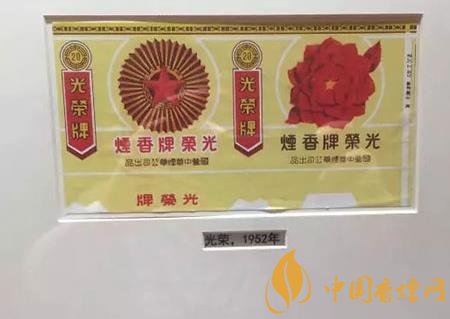 ——光榮牌,1951年國(guó)營(yíng)中華煙草公司創(chuàng)牌,品名意為“志愿軍光榮”。煙標(biāo)早期以和平鴿與田野、工廠為圖案,后改為一朵鮮艷的大紅花。……