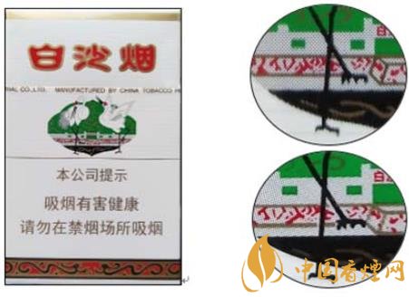 白沙(硬)因江南名泉式 ---“白沙古井”而得名,包裝以“白沙古井” 為背景,象征吉祥如意的雙鶴圖形為主體圖案。產(chǎn)品不斷應(yīng)用新技術(shù),科學(xué)配方,合理配香配料,口味特點(diǎn):煙香濃馥、諧調(diào),余味純正舒適?,F(xiàn)就該卷煙小盒鑒別方法介紹如下: