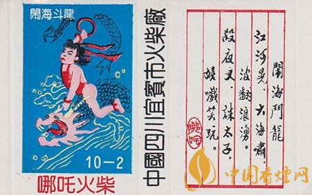 圖6 四川宜賓市火柴廠出品于上世紀80年代的十枚套哪吒火花,本枚為鬧海斗龍