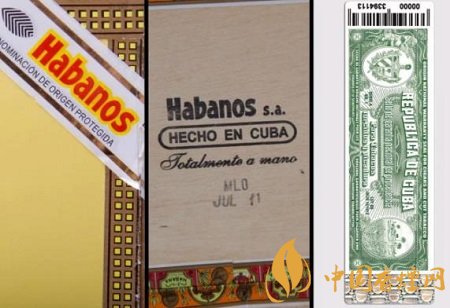真正的包裝并不能保證里面的雪茄是真的,但是假的包裝能讓你快速便捷地辨別出是偽劣雪茄。在盒子的右上角可以找到哈伯納斯(Habanos )標簽,在左邊能找到古巴擔保印章(帶有全息圖和盒子代碼),盒子底部則印有日期、卷制手法、產地等信息。一些懶惰的偽造商出售的盒子會帶有標簽,但不是在外包裝上,而茄標多數會缺乏浮雕圖案,顏色和細節(jié)會和真貨存在細微的差別。