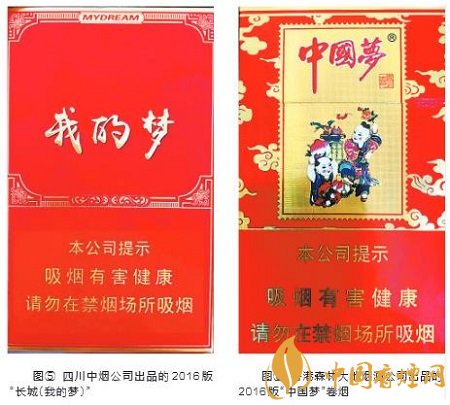 2012年11月29日,當中國夢提出后,各地紛紛作出響應,相繼推出了行業(yè)夢與地方夢,掀起了夢想熱潮。如:強國夢、強軍夢、體育強國夢、中國航天夢、中國航母夢、河南夢、貴州夢等。煙草行業(yè)也紛紛在煙標上表達夙愿,湖北中煙研制了“中國夢”、“黃鶴樓·百年夢”、“黃鶴樓·我的夢”,出品了“黃鶴樓·圓夢”,河南中煙研制了“夢之葉”、出品了“黃金葉·百年夢”(見圖④),四川中煙出品的“長城·我的夢”(見圖⑤),甘肅中煙出品的“蘭州·飛天夢”,香港森林大地煙酒公司出品的“中國夢”(見圖⑥)等。