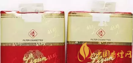 真煙封簽中間“煙徽”顏色較深,背面采用機器上膠,為兩條靠邊的平行膠痕。(上真下假)