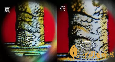 鑒別真假“中華”的關(guān)鍵在于用放大鏡查看條包兩端中英文字母的邊緣有無放射鋸齒,真“中華”的字體在放大后邊緣依然很規(guī)整,無鋸齒。假“中華”卷煙的字體在用20倍放大鏡觀察邊緣呈明顯的鋸齒狀。
