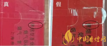 真品硬中華小盒拉帶頭為半圓形,邊緣光滑無毛渣;假煙小盒拉帶頭半圓形不規(guī)則,邊緣不夠光滑,有毛渣。
