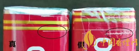 真品小盒拉帶頭為方頭圓角,邊緣光滑無毛渣;假煙小盒拉帶頭形狀為平頭圓角,邊緣不夠光滑,有毛渣。