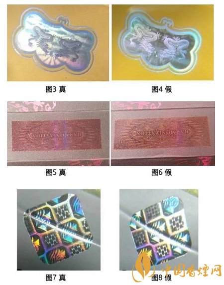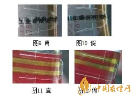 為了防范不法分子假冒而損害企業(yè)、消費者利益,卷煙生產(chǎn)企業(yè)采取了各種防偽技術(shù),并利用防偽技術(shù)來打擊假冒偽劣,整頓和規(guī)范市場,提升企業(yè)及其產(chǎn)品形象,是一種展示企業(yè)對消費者、對社會負責任的必須手段。卷煙防偽技術(shù)是綜合應用現(xiàn)代科學理論與技術(shù),在產(chǎn)品的商標標識上制作具有高科技含量的圖案或信息,達到難以仿制的目的。目前卷煙行業(yè)應用較多的防偽技術(shù)有激光全息防偽、彩色纖維、微縮印刷、變色油墨、超線防偽等等,且多種防偽技術(shù)結(jié)合應用,科技含量高,制作工藝復雜,假冒煙極難仿制。早期偽造的防偽標志粗糙容易識別,近些年,有些不法分子利用煙草行業(yè)防范疏漏,套取企業(yè)機密,部分假煙防偽制作逼真,難以確認。例1:云煙(軟大重九)激光全息防偽,不同的角度呈現(xiàn)立體雕刻的雙龍、深度云層背景與動態(tài)光芒交替變換的效果(圖3),圖4假煙雙龍立體感也非常好;例2:白沙(和天下)超細線防偽,運用線條進行防偽,有豐富的曲線、粗細、陰陽線等變化,圖5、圖6真假難辨;例3:利群(新版)菱形圓角激光全息防偽標志,標志內(nèi)有廠徽及梅花圖案,在不同的角度擺動可見方形、橢圓形等多種幾何圖案,石塔下面有微縮防偽(廠長簽名),圖7、圖8亦是真假難辨。