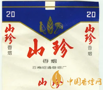 蘑菇是世界上食用菌中最大的一個(gè)菇種,因其富含的人體必需氨基酸、礦物質(zhì)、維生素和多糖等營(yíng)養(yǎng)成分,而有“植物肉”之稱。上世紀(jì)80年代,云南昭通卷煙廠出品有一枚“山珍”(圖5)煙標(biāo),該標(biāo)主版上方于藍(lán)底上,采用金色分別描繪了兩種蘑菇,以及一根春筍的畫面。