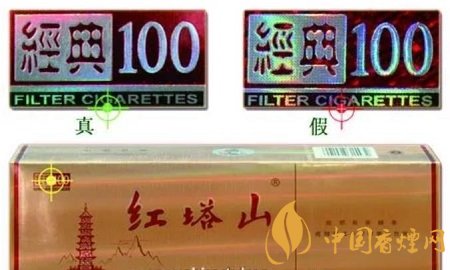 “紅塔山(硬經(jīng)典100)”是紅塔煙草(集團(tuán))有限責(zé)任公司出品的全國(guó)知名卷煙,深受廣大消費(fèi)者的喜愛(ài)。為提高消費(fèi)者和零售商戶對(duì)假冒卷煙的甄別能力,現(xiàn)將查繳的假冒“紅塔山(硬經(jīng)典100)”部分特征與真品卷煙相比較,對(duì)照?qǐng)D片如下: