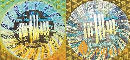 真品卷煙防偽標識采用激光全息防偽技術,不同角度呈現(xiàn)的圖文線條清晰、立體感強。假冒卷煙防偽標識系偽造,變換角度呈現(xiàn)的圖文線條模糊、立體感不強。(左真右假)
