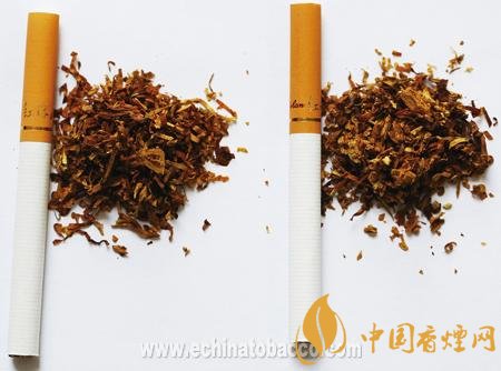 煙支過濾嘴及煙絲差異對(duì)比:真煙煙支采用單一醋纖濾嘴,長(zhǎng)度為24mm,煙絲切絲寬度均勻,煙絲疏松、光澤油潤(rùn)性好、呈檸檬黃色,煙絲結(jié)構(gòu)為葉絲、膨脹梗絲和造紙法再造煙葉;假煙煙支過濾嘴較短,長(zhǎng)度約為20mm,制絲工藝粗糙,色澤發(fā)暗無光澤、煙絲中含碎末較多,大量梗絲未經(jīng)過膨脹處理,無造紙法再造煙葉,與真品特征存在明顯差異。