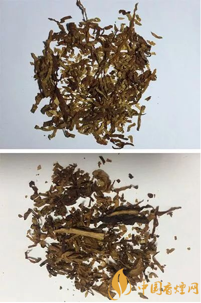 真品卷煙煙絲呈金黃色、絲條狀,煙絲結構為純葉絲,香氣醇厚;