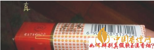 1這個圖片看噴碼和字體,真的噴碼是雙層噴碼,有糊的感覺,而且噴碼有沖刺感,假煙有的也是雙層噴碼但是沒有糊的感覺和沖刺感。