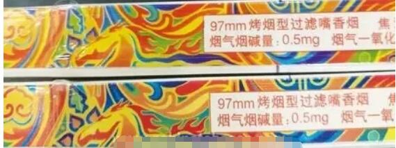 真煙藍色下邊是過渡的淡藍色,假煙無過渡色直接變成綠色。真煙中間為藍色,假煙全都是綠色。圖右側(cè)四個標注處相同,真煙為藍色的三個圓珠,假煙為綠色的三個圓珠。