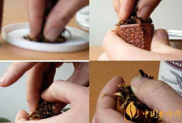 很多人都說“塞”煙草,“塞”這個(gè)字是抽煙斗最壞的觀念之一,裝煙草用塞的煙斗抽法,這一斗煙就不好抽了。煙斗怎么抽?將揉松的煙草輕輕搓成小球放入斗底在煙草輕裝到斗頂齊平,用工具將煙草下壓至五六分斗就可以了。用手指壓煙草檢查是否有彈性,若無(wú)彈性表示太緊,一定要取出重裝;若仍稀松,則再輕壓幾下。