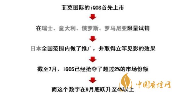 這種技術(shù)改革和行業(yè)發(fā)展為企業(yè)和煙民創(chuàng)造了雙贏的局面,加熱不燃燒(HnB)在減少煙草相關(guān)危害方面的作用不僅僅是體現(xiàn)在技術(shù)理論層面,且已經(jīng)有商業(yè)實(shí)例。例如菲利普莫里斯公司的加熱不燃燒產(chǎn)品iQOS憑借其容易使用、沒有煙灰和二手煙、以及充分模擬了吸煙的感覺等特點(diǎn),目前在日本、葡萄牙、意大利、羅馬尼亞和俄羅斯等地受到了消費(fèi)者極大歡迎。自2016年第二季度開始,iQOS在日本全國(guó)范圍內(nèi)推出后,已經(jīng)獲得了12%的市場(chǎng)份額。富國(guó)銀行分析師Bonnie Herzog對(duì)加熱不燃燒(HnB)產(chǎn)品的前景持樂觀態(tài)度:“估計(jì)到2025年,菲利普莫里斯公司的iQOS可能會(huì)取代發(fā)達(dá)市場(chǎng)30%的傳統(tǒng)卷煙業(yè)務(wù)。”