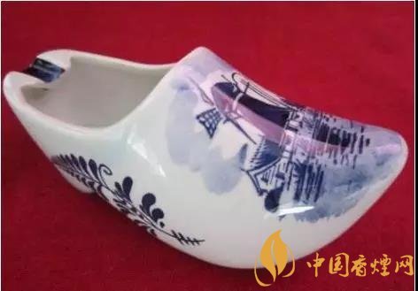 這款工藝煙灰缸是來自荷蘭的這款煙灰缸,呈尖頭木屐形,底色為白色,除少量文字與邊紋外,圖案皆以藍色繪之。這款高檔煙灰缸圖片鞋身左右前后都繪有對稱的三葉草圖案;鞋面繪有荷蘭風車、村舍及水田灌木圖案;此外,鞋頭還用淡色繪以藍天白云,籠罩上空。而鞋口靠近鞋跟方向的邊沿處,設計了三個凹槽,方便多人吸煙時使用??偠灾?,是一款顏值與實用并存的煙灰缸無疑了。