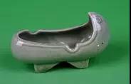 這款工藝煙灰缸是來自韓國的瓷質(zhì)煙灰缸,顏色為細膩的青綠色,造型呈韓國古時的翹頭船有齒屐鞋形,鞋口沿輕微向內(nèi),靠近鞋跟及鞋頭處各有一個凹槽,用來擱置香煙。